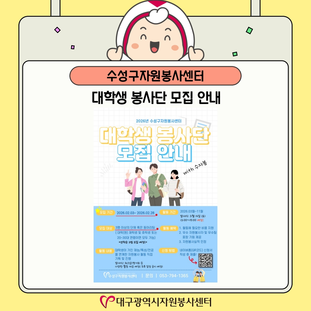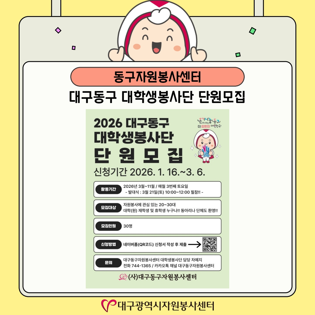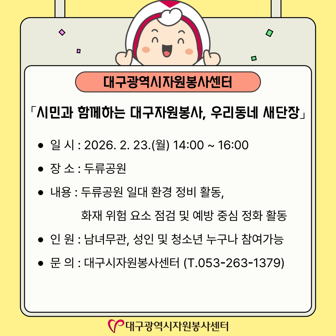 | Á¦ ¸ñ | [26-02È£]´ë±¸±¤¿ª½Ã¡¤±¸¡¤±ºÀÚ¿øºÀ»çȰµ¿ ¼Ò°³ | ||