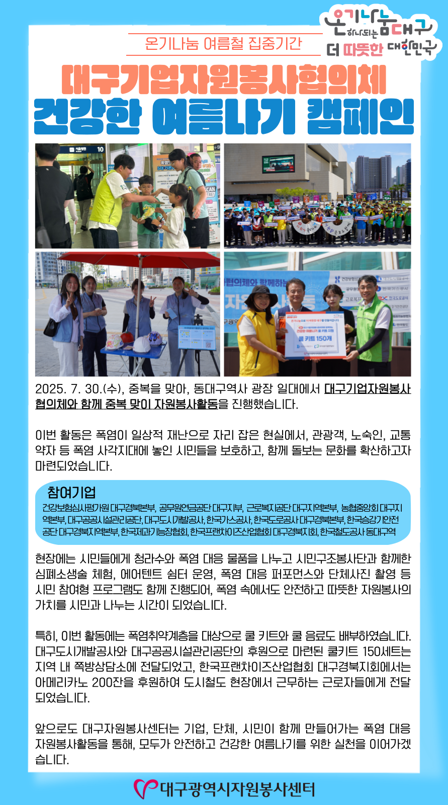 | Á¦ ¸ñ | [25-19È£] ´ë±¸±â¾÷ÀÚ¿øºÀ»çÇùÀÇü °Ç°ÇÑ ¿©¸§³ª±â Ä·ÆäÀÎ | ||