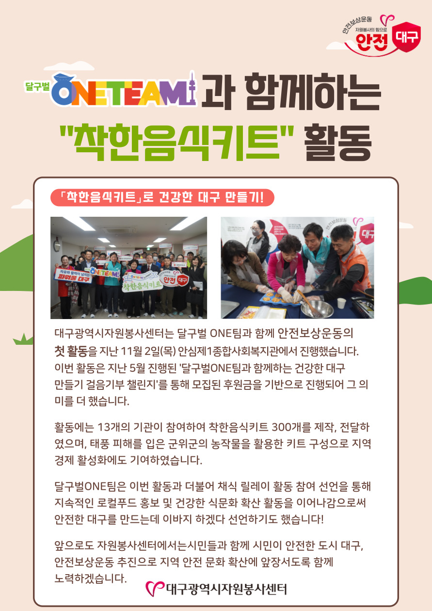 | Á¦ ¸ñ | [23-37È£] ´Þ±¸¹ú¿øÆÀÀÇ "ÂøÇÑÀ½½ÄŰƮ" Ȱµ¿ | ||