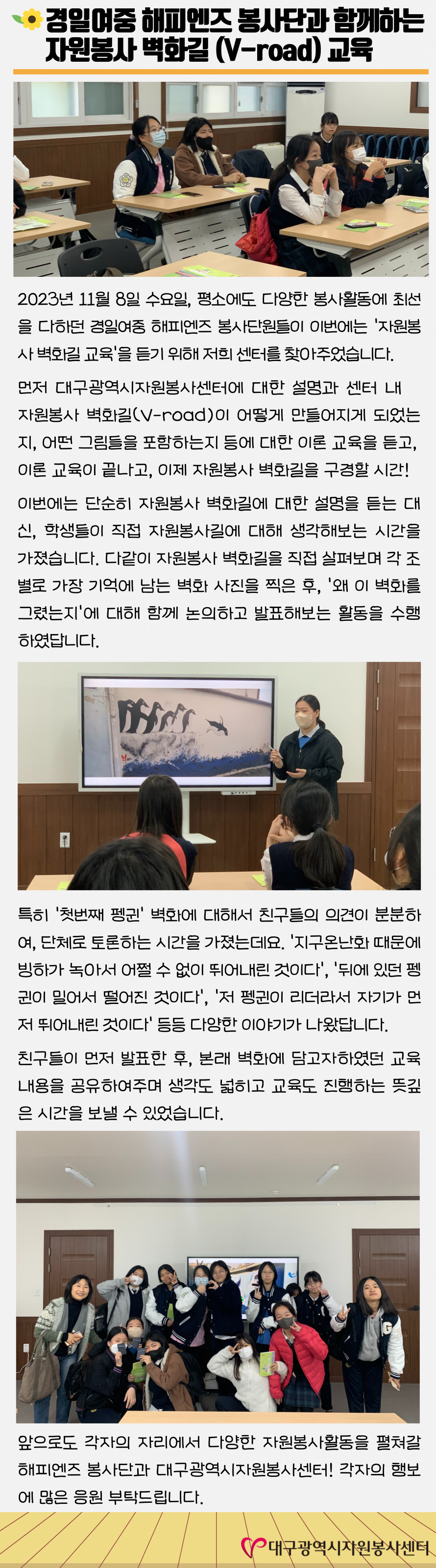 | Á¦ ¸ñ | [23-37È£] °æÀÏ¿©ÀÚÁßÇб³¿Í ÇÔ²²ÇÑ "V-road" | ||