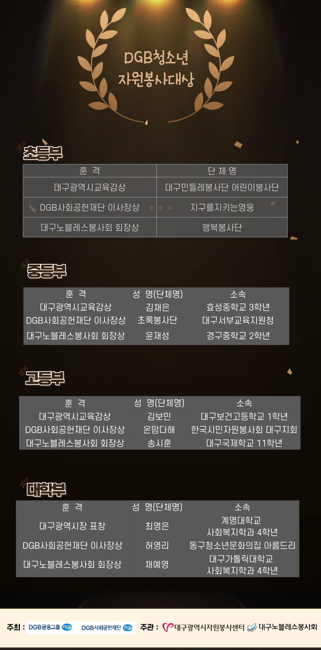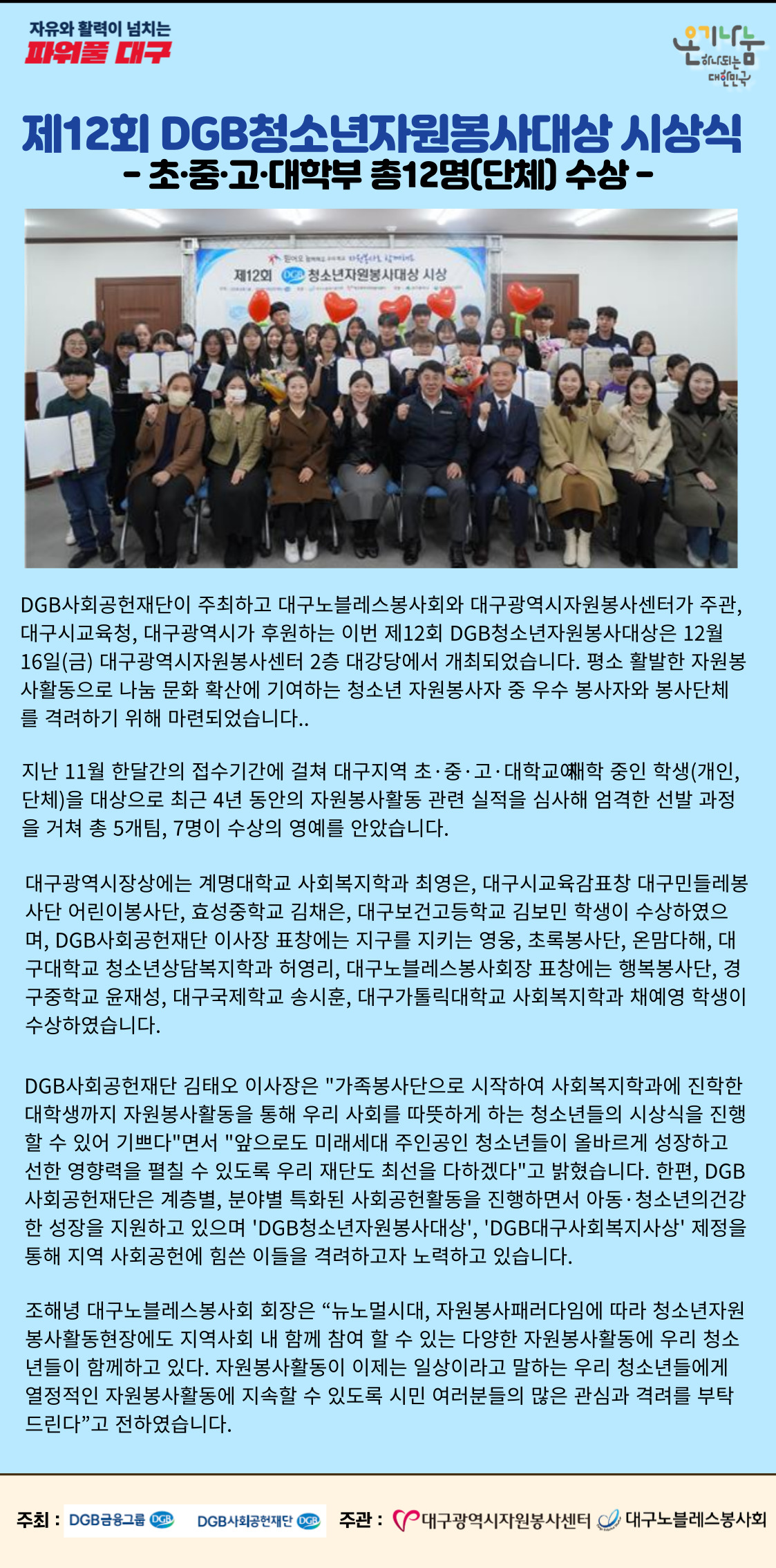 | Á¦ ¸ñ | [23-43È£] DGB û¼Ò³â ÀÚ¿øºÀ»ç ½Ã»ó½Ä | ||
